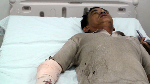 Nạn nhân Dũng điều trị tại bệnh viện đa khoa Đồng Nai. Ảnh: Hoàng Trường