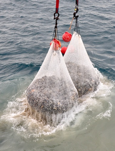 Rọ đá được thả xuống đáy biển chèn bảo vệ hệ thống cáp ngầm đi qua vùng địa chất phức tạp. Ảnh:Trí Tín.